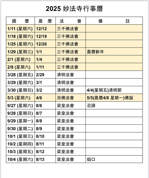 妙法禪寺 法會通啟